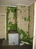 Rappioromanttinen kuva huoneesta jossa oli vihreät tapetit. |