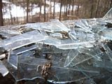 Rikottua lasia, näkymä ohi menevälle tielle päin. Tuolla jossain puiden takana on meidän polkupyörät parkissa... |