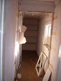 Näkymä ikkunan luota sisäänpäin, oikeassa reunassa näkyy ullakon portaiden alla ollut matala komero. |