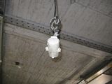 Tämä katosta roikkunut pistorasia ei liene koulun alkuperäistä sisustusta, vaan se on peräisin viimeisen käyttäjän, kansalaisopiston ajoilta. |